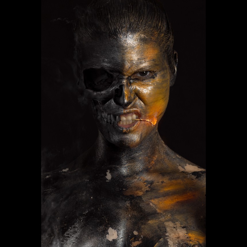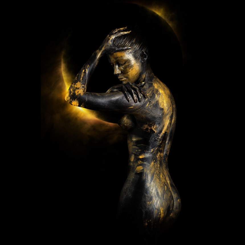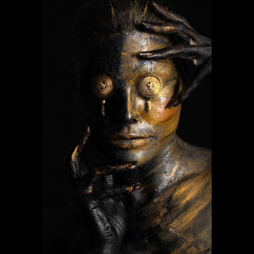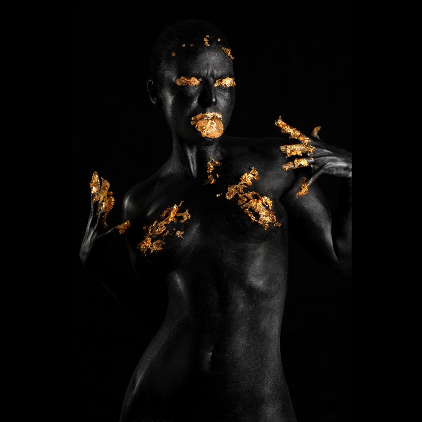 fine art portraiture a body painted portrait displayed for 'A New Digital Dawn' at Chicago in 2024