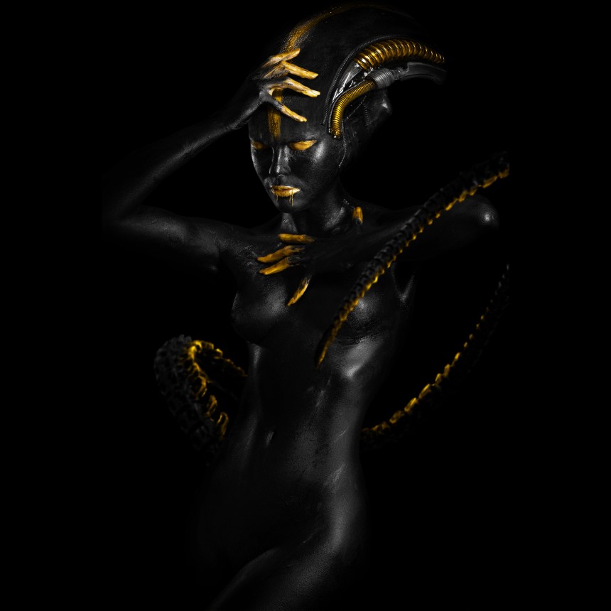 Fine nude art. A photo composition inspired by 'The bat-woman' (Albert Joseph Penot) theme